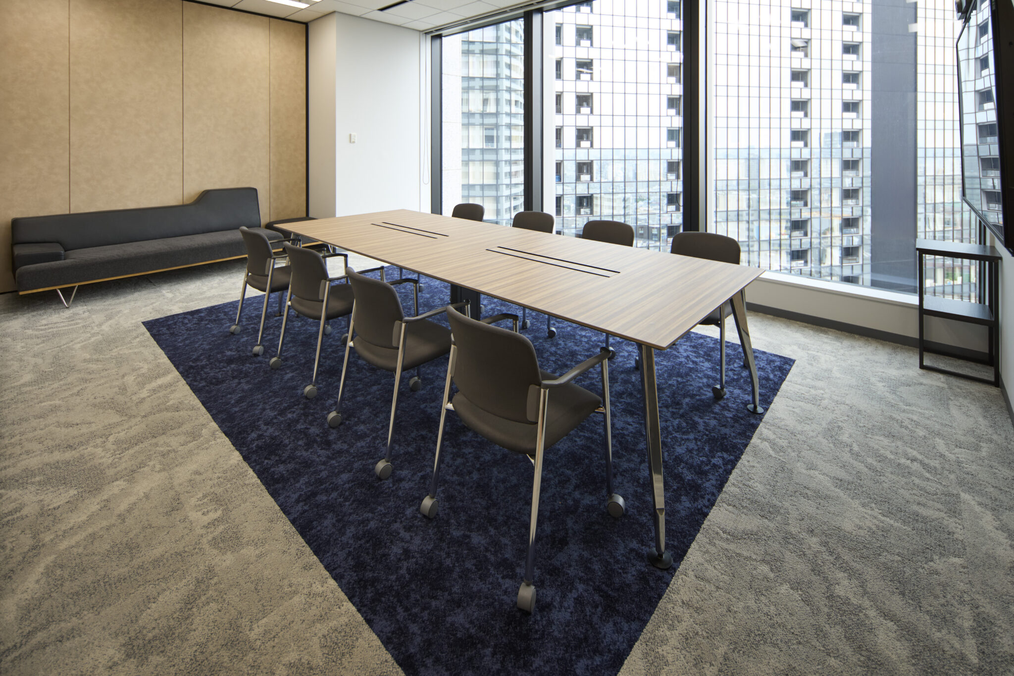 機能面では、各会議室の床材を変えることで視覚的な識別性を高め、利便性を向上。