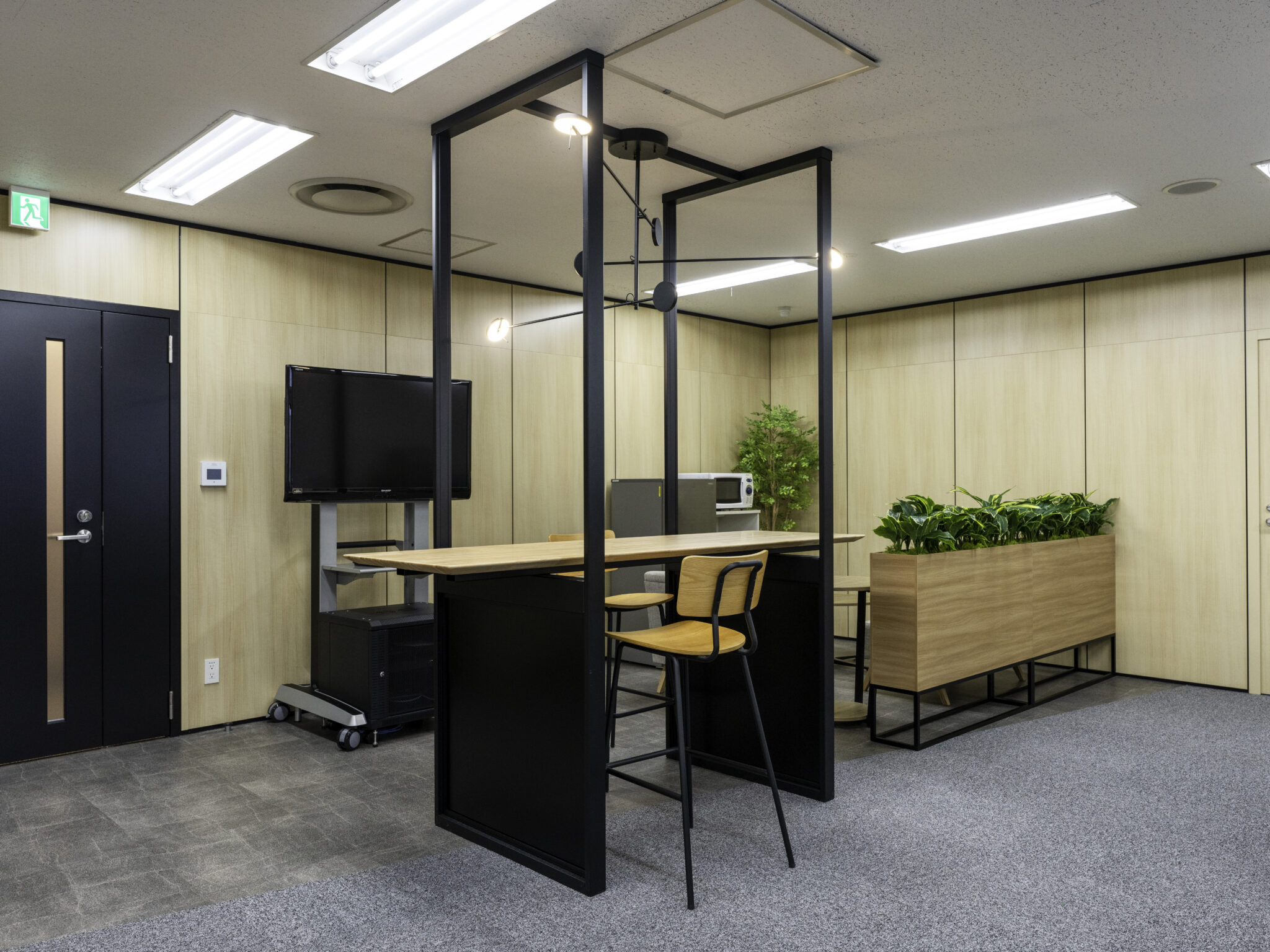 ハイテーブルとして使えるだけでなく、気軽にコミュニケーションがとりやすい場所となるタッチダウンスペースとしてご採用いただきました。