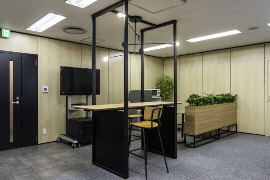 社員の方の動線や休憩スペースの近くに配置することにより、タッチダウンとしてだけでなく、オープンな打合せスペースとして、また役員と社員のコミュニケーションの場としても使えると喜んでいただきました。