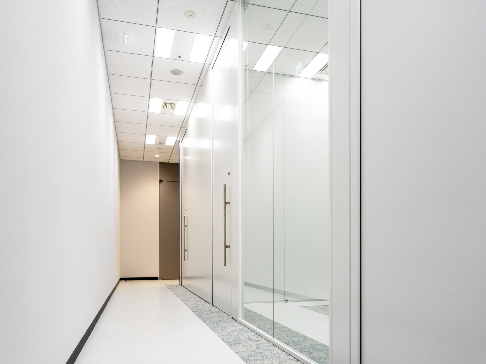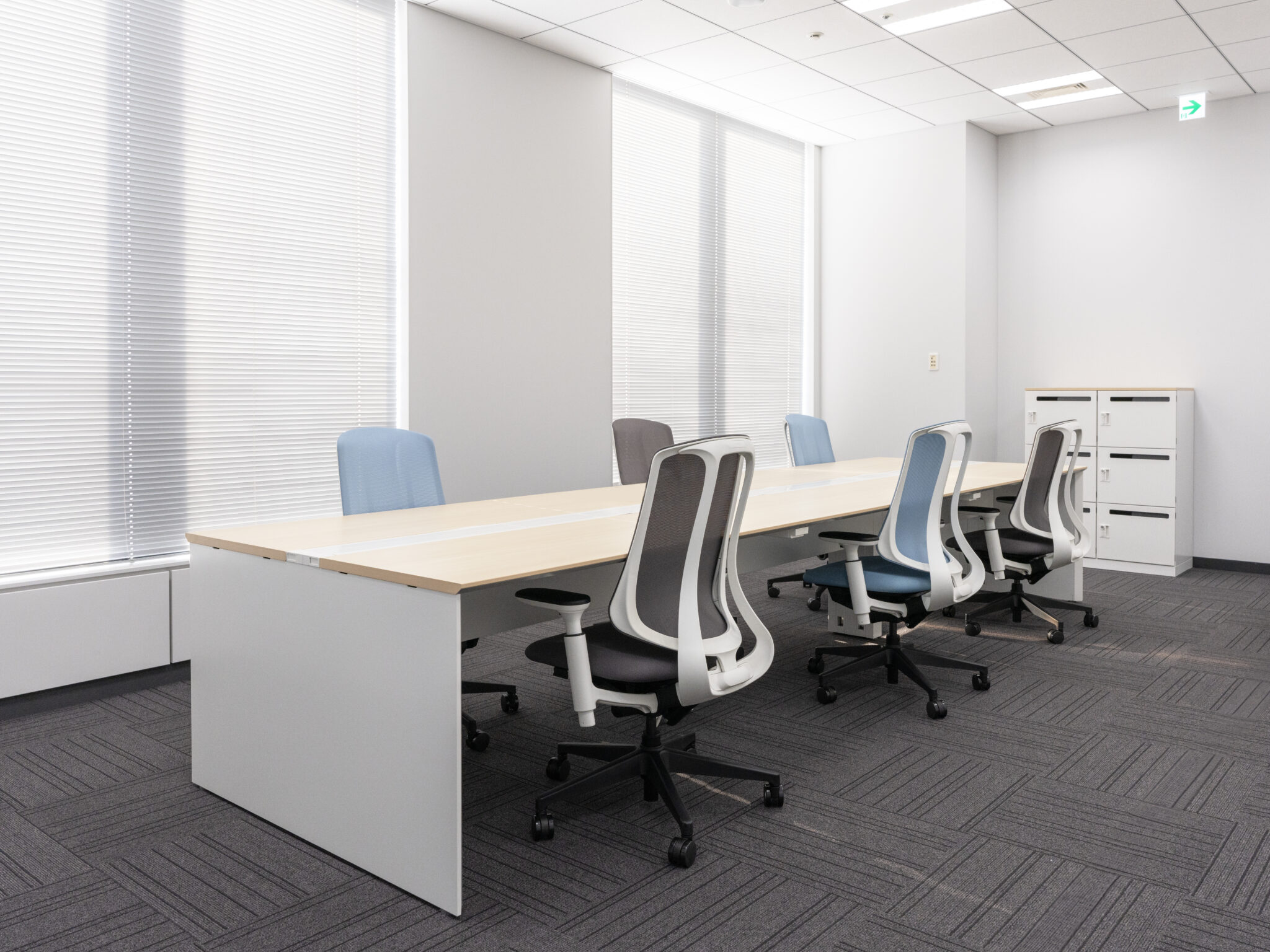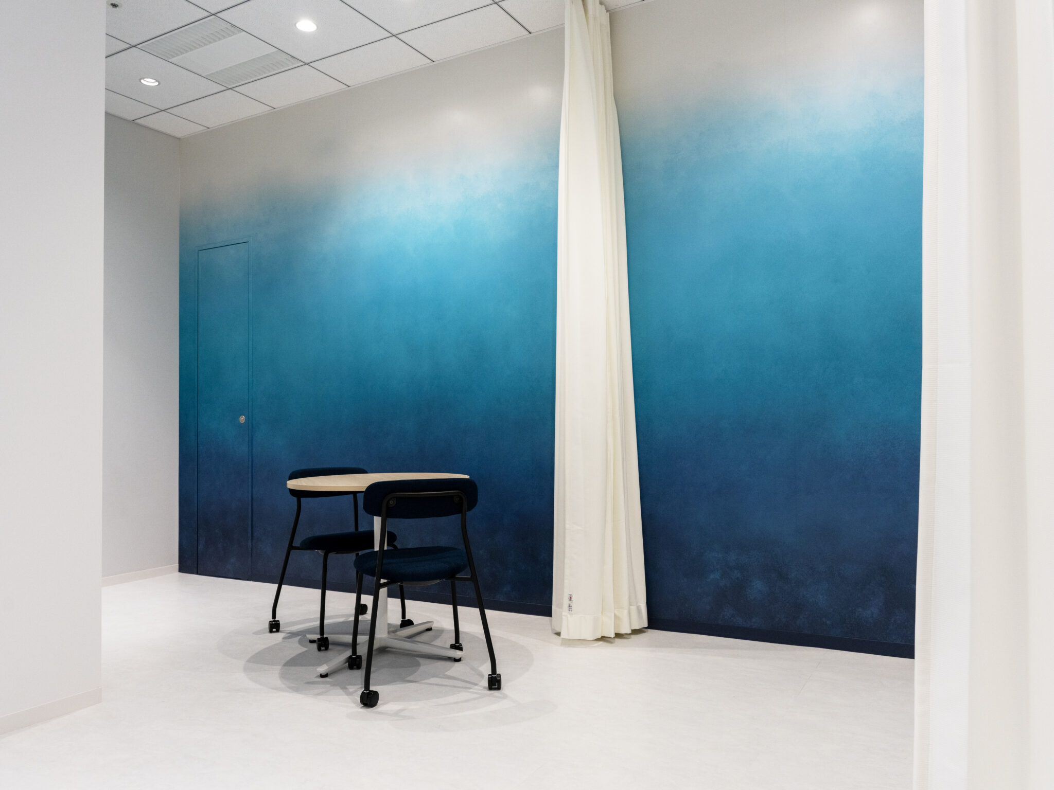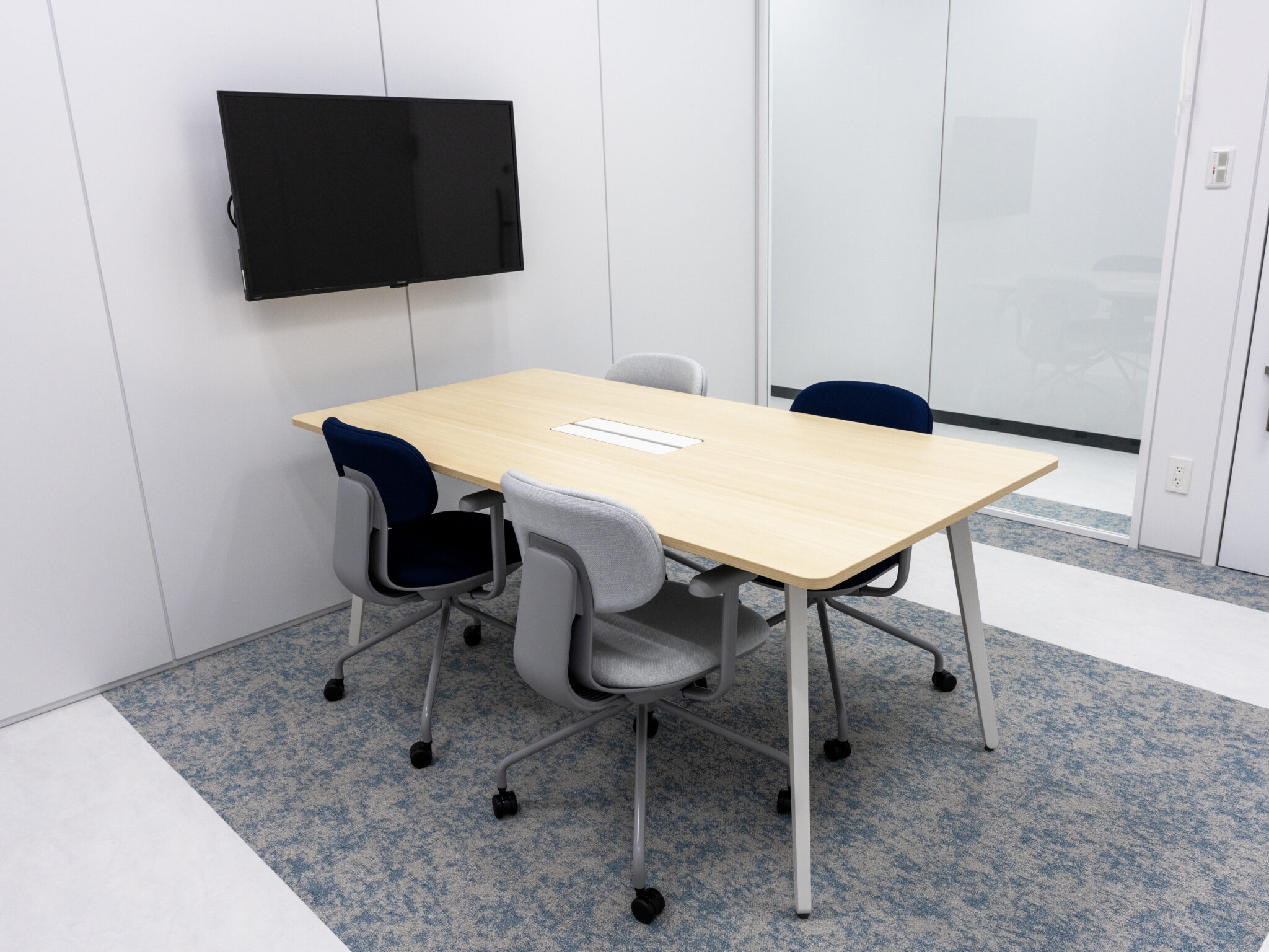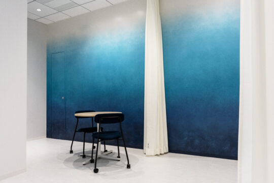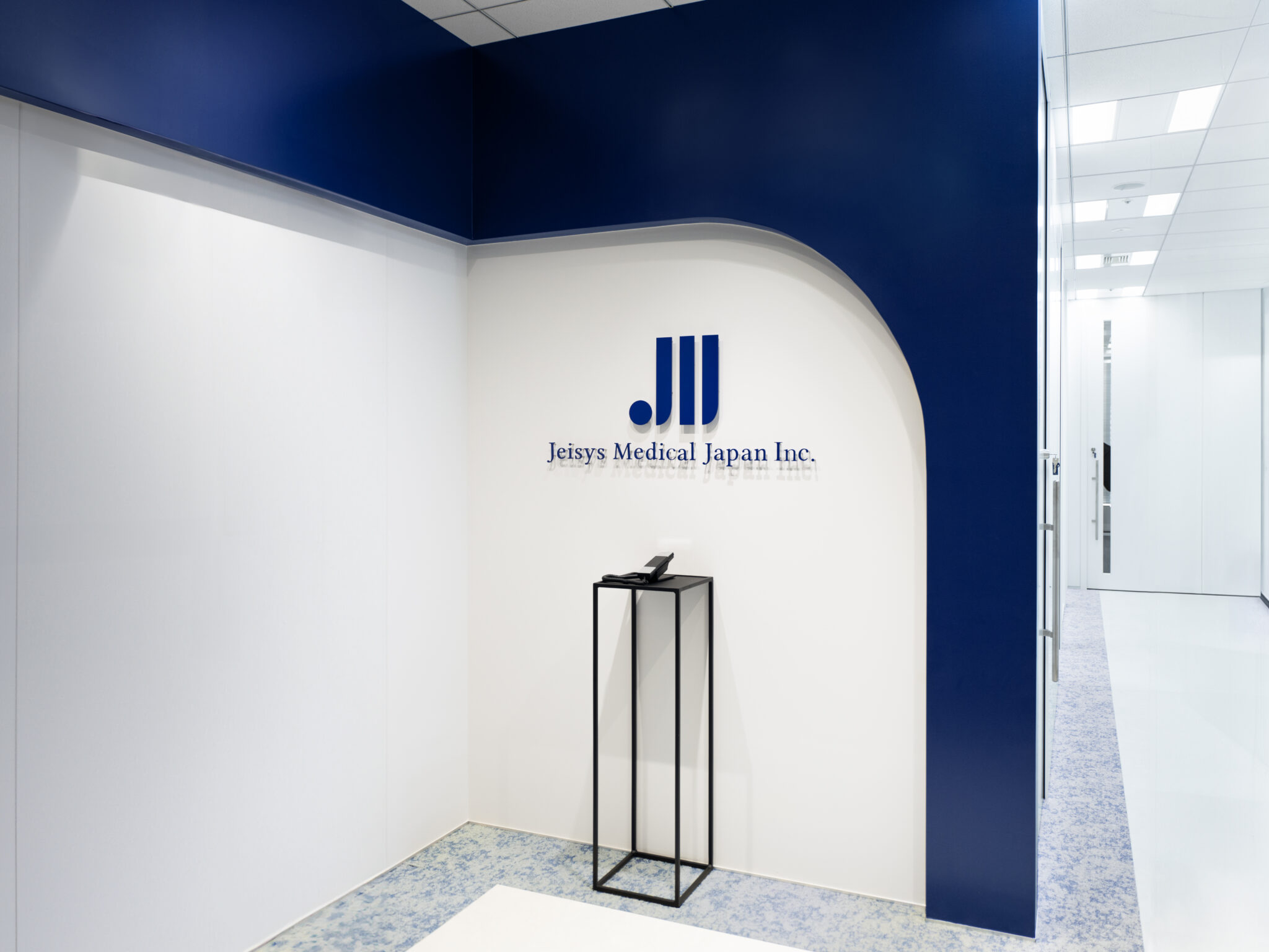 エントランスやオフィス内には企業のシンボルカラーであるブルー系の配色をポイントカラーに使い、内装材や什器のカラーもあわせて選定させていただきました。 Jeisys Medical Japan様「らしさ」を感じるような、明るく、清潔感のあるデザインとしました。