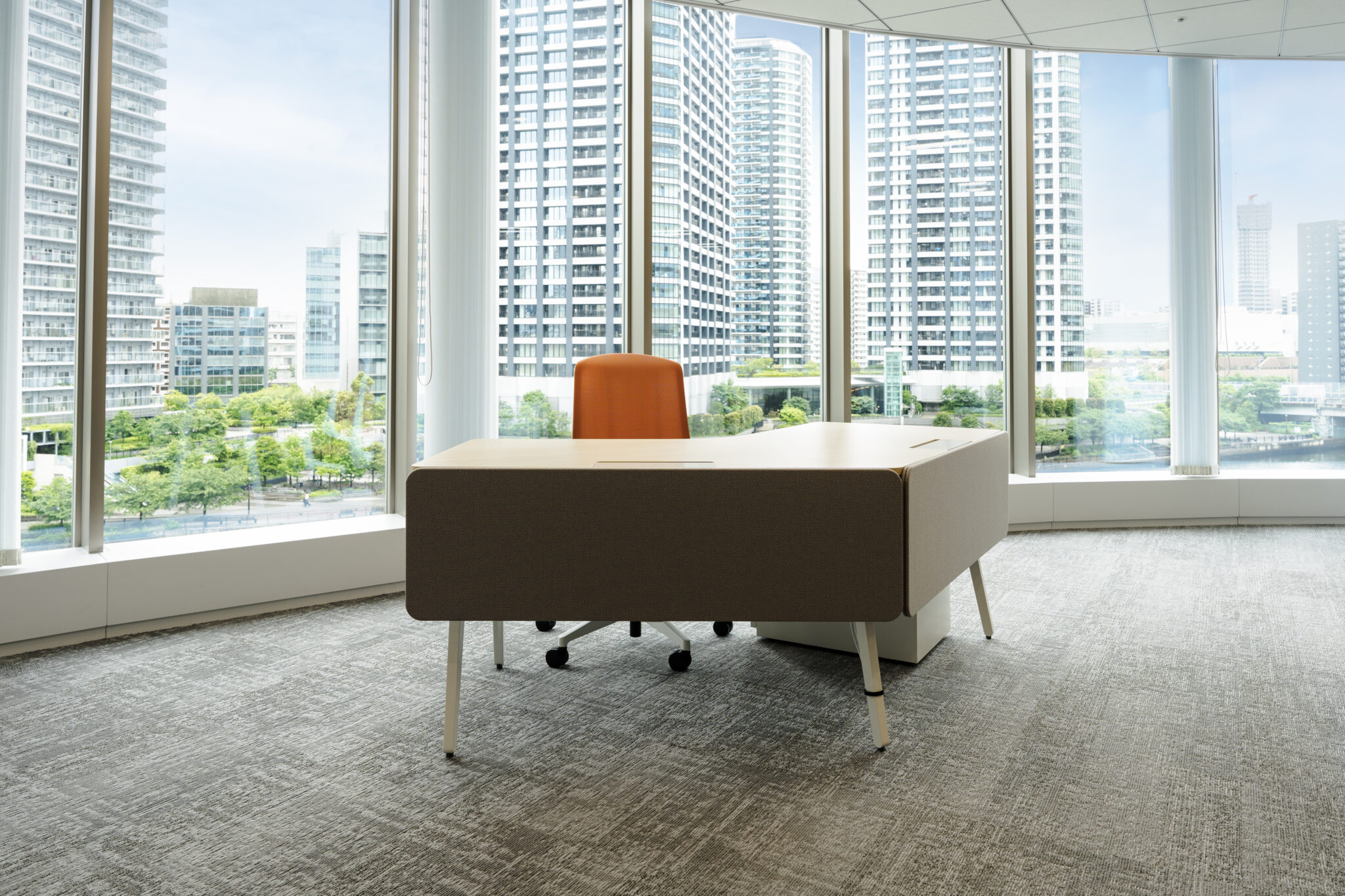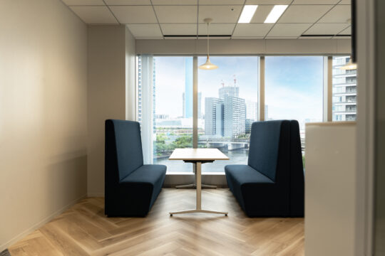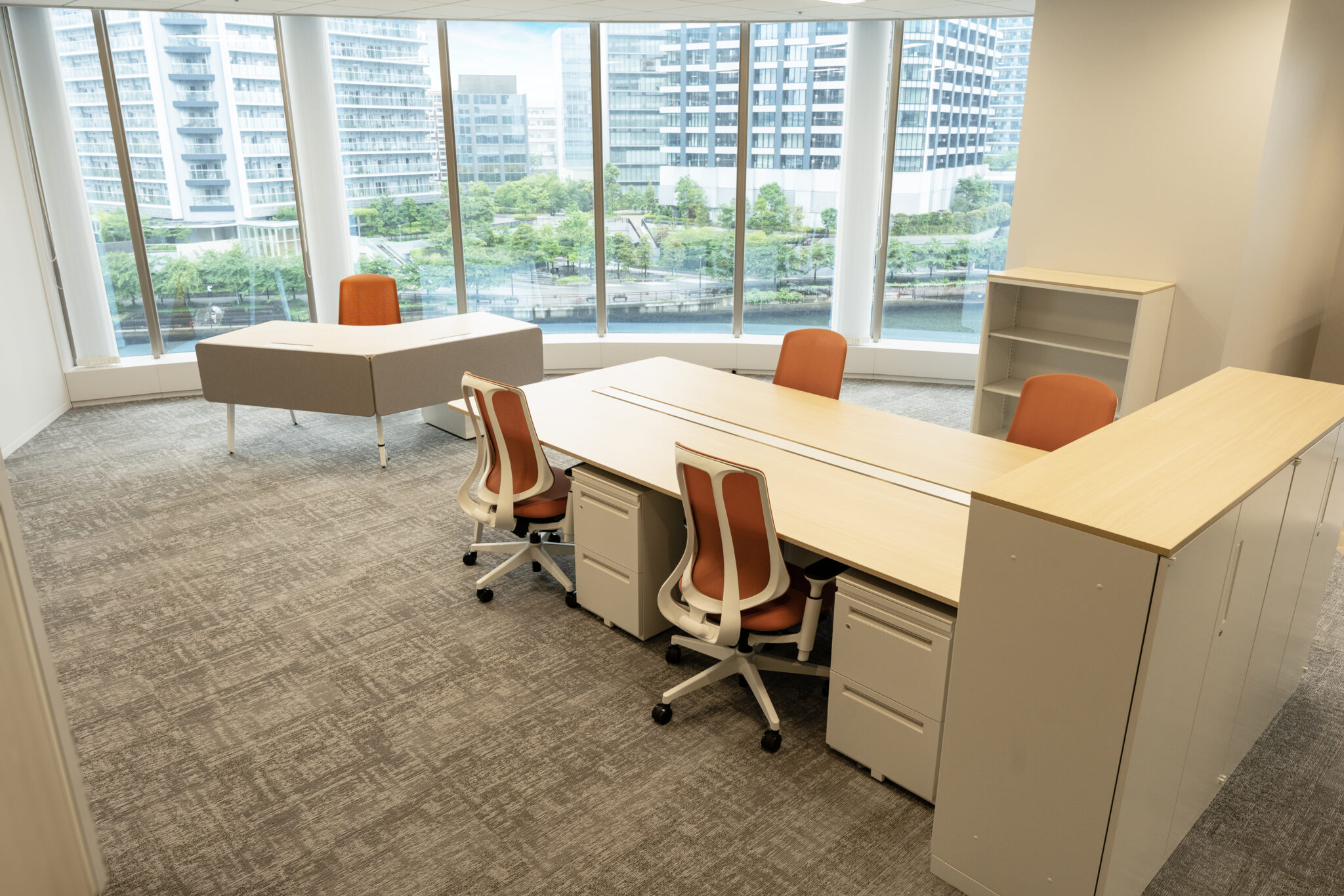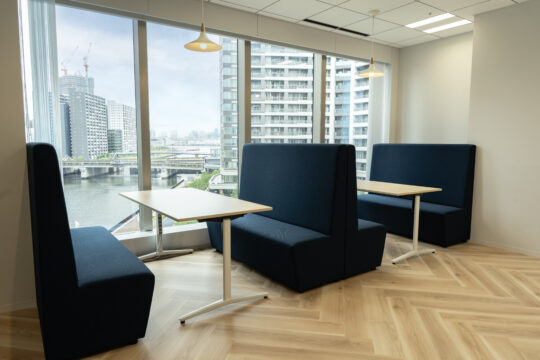 ビルのコーナーに位置し、大きな窓のある空間を生かしたレイアウトで