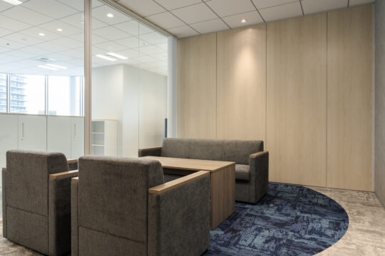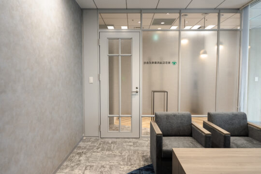 ライトグレー、ナチュラルな木目を基調としたインテリアを配し、明るいオフィスを目指しました。