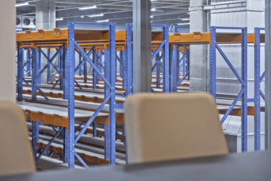 年々増加する保管物の物流量に応える体制を整え、新事業の中核を担う新拠点として新しく自社倉庫を設立しました。その中のオフィスエリアのデザインをお手伝いさせていただきました。