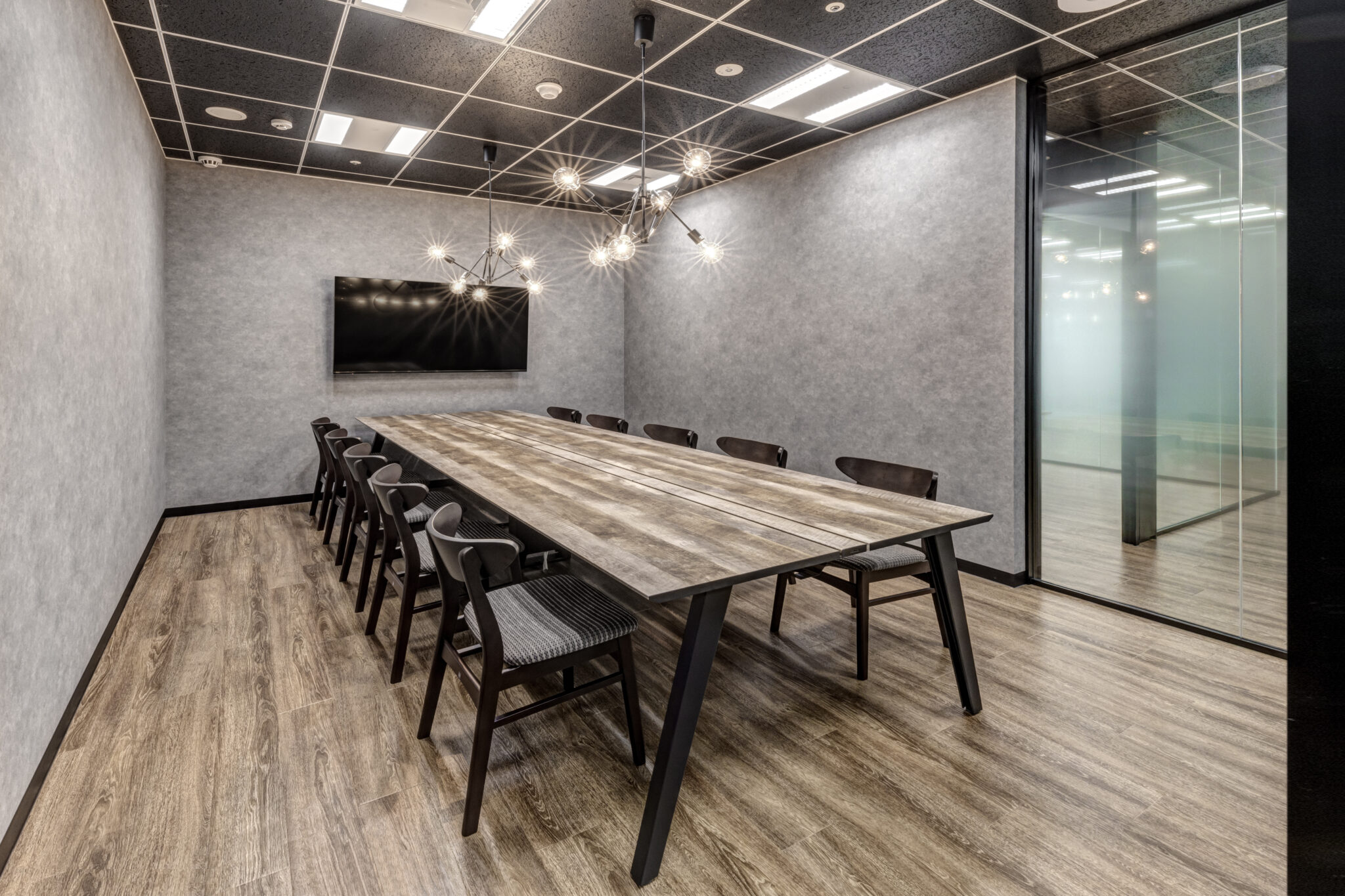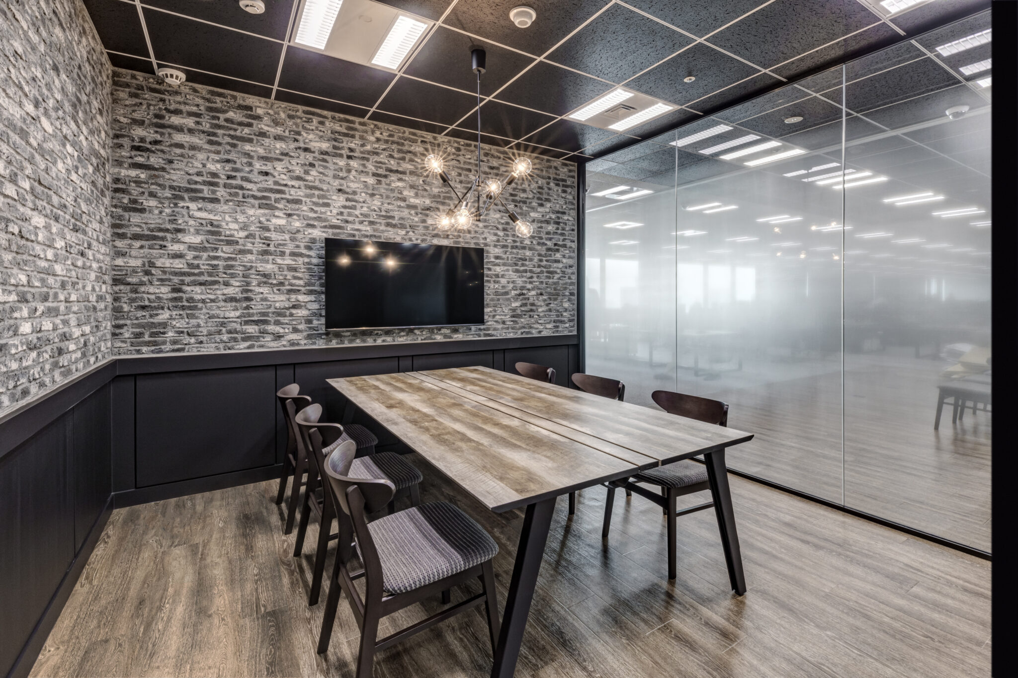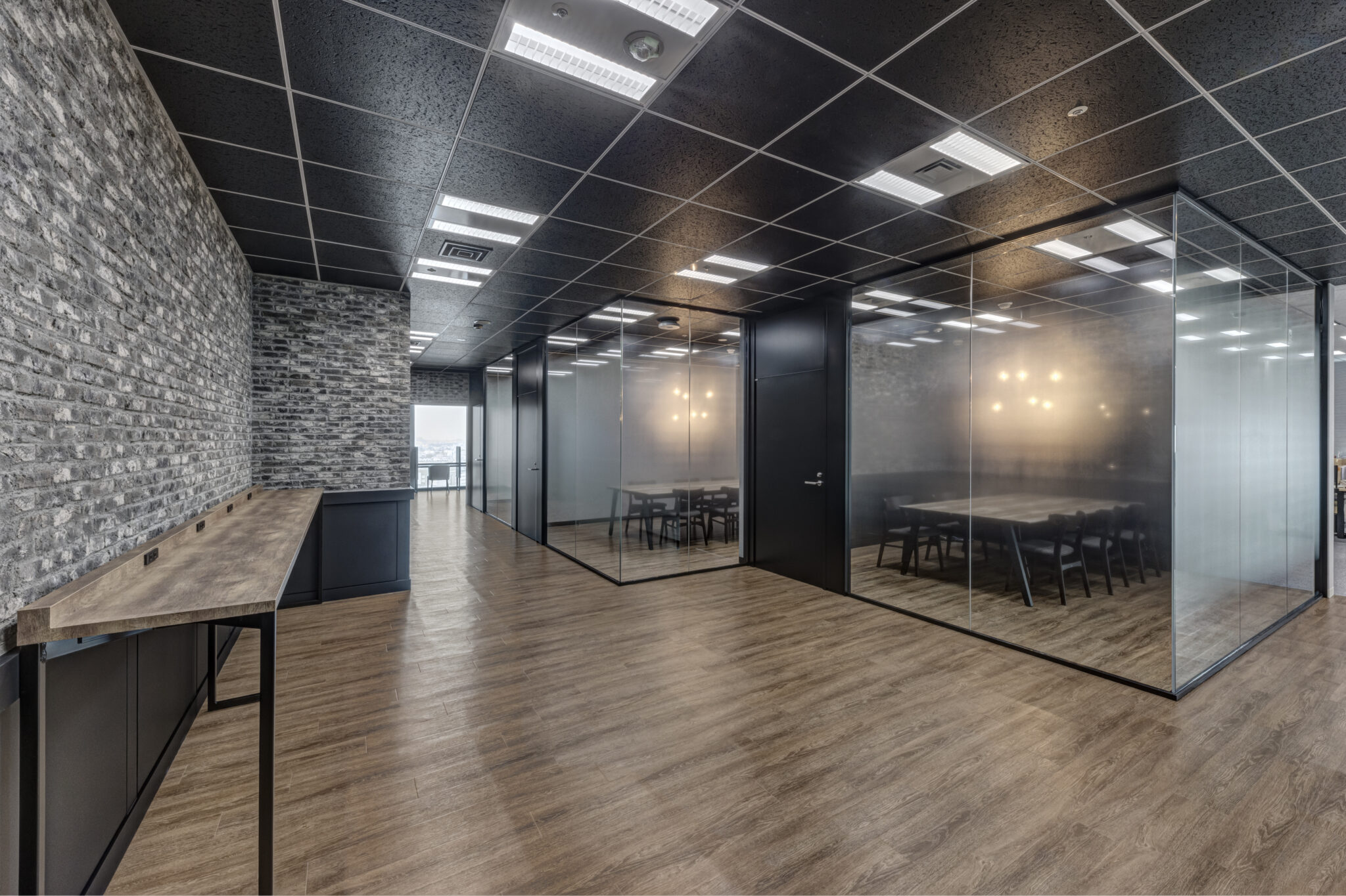 まず、新たな顔となるクライアントエリアのインテリアは訪れた方々や社内の利用者の感性に訴えることができるようにあえてオフィスらしさを排したクラフト感ある雰囲気で空間を構成しました。そしてオフィスの心臓部となる執務エリアはシンプルながらもお互いの存在を感じることができるレイアウトで様々なレイヤーのコミュニケーションを後押ししています。